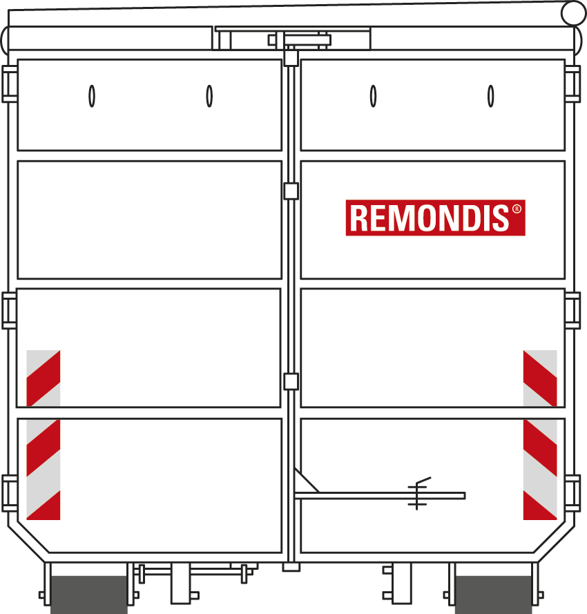 Alle Container dürfen einheitlich über die gesamte Containerfläche maximal bis zur vorne bzw. hinten gelegenen Ladekante befüllt werden, um einen gefahrlosen Transport gewährleisten zu können. Die Höhe der Front- und Heckwand darf nicht durch mittig gelagertes geladenes Material überschritten werden. Eine eigenverantwortliche Erhöhung der Wände (z.B. durch Bretter, Metallplatten usw.) ist nicht zulässig. Zudem dürfen keine Gegenstände (z.B. Bretter, Metallrohre, Äste usw.) über die Ladekante hinausragen, um einen sicheren Transport zu gewährleisten.