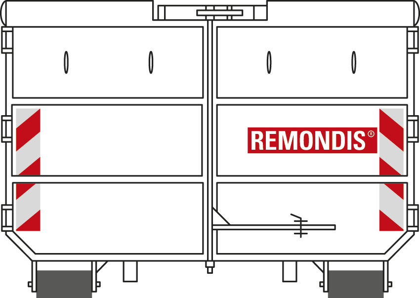 Alle Container dürfen einheitlich über die gesamte Containerfläche maximal bis zur vorne bzw. hinten gelegenen Ladekante befüllt werden, um einen gefahrlosen Transport gewährleisten zu können. Die Höhe der Front- und Heckwand darf nicht durch mittig gelagertes geladenes Material überschritten werden. Eine eigenverantwortliche Erhöhung der Wände (z.B. durch Bretter, Metallplatten usw.) ist nicht zulässig. Zudem dürfen keine Gegenstände (z.B. Bretter, Metallrohre, Äste usw.) über die Ladekante hinausragen, um einen sicheren Transport zu gewährleisten.